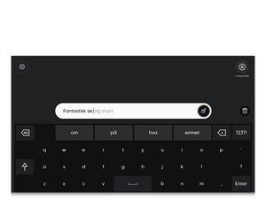 Skriv effektivt det du vil si i tekstmeldinger og samtaler med ord- og setningspredikasjon, som lærer og tilpasser seg din personlige kommunikasjonsstil. Oppretthold et mer naturlig taletempo med hurtigmeldinger, det vil si forhåndsprogrammeringer av ofte brukte og tilpassede setninger. Slå av eller på mikrofonen med ett enkelt valg.
